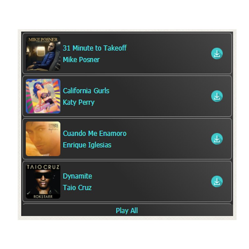 This is a classic playlist display that works with the AudioFly music player. Its key feature is that it allows you to play the entire playlist with one click.