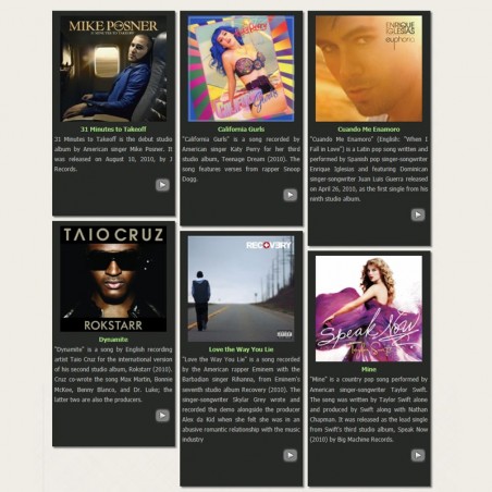 Grid Display is an AudioFly music player add-on. You can use this Joomla module to make your songs look and feel as articles, with generous descriptions and play option for each song.